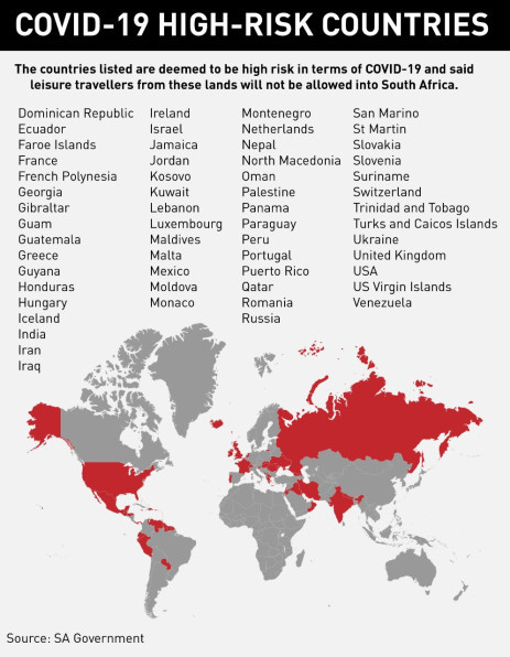 International Relations Minister Naledi Pandor said that the list was drawn up in terms of World Health Organization criteria and will be reviewed every two weeks, taking into account changing rates of infection and death around the world.