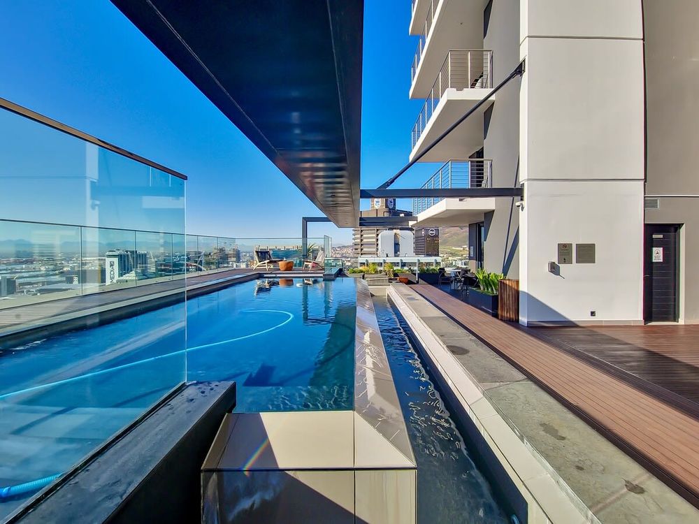 This beautiful apartment is located in a modern, upmarket, secure building in the heart of the City. This unit does not experience loadshedding/ Power cuts :) There is 24hr security to put your mind at ease as well as terrific Communal Areas with unrivalled views of the City, Mountains and Atlantic Ocean. The apartment has a fully kitted kitchen as well as a bathroom and open plan living/ sleeping area. The bed is plush and tastefully decorated and accessorised- making this a couples dream stay