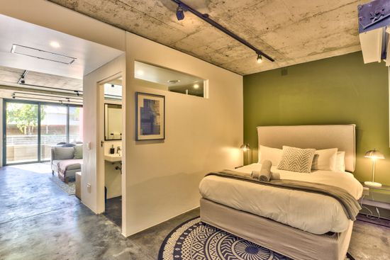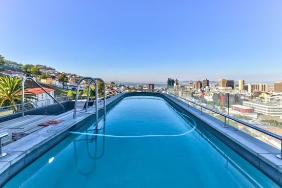 Modern, studio apartment in new development in Historic, culturally rich - Bo Kaap! There is a communal pool, gym and deck area with unsurpassed views of the city and Atlantic! The building has 24 hour security, secure parking for one vehicle and is central enough that make Uber convenient and cost effective.
