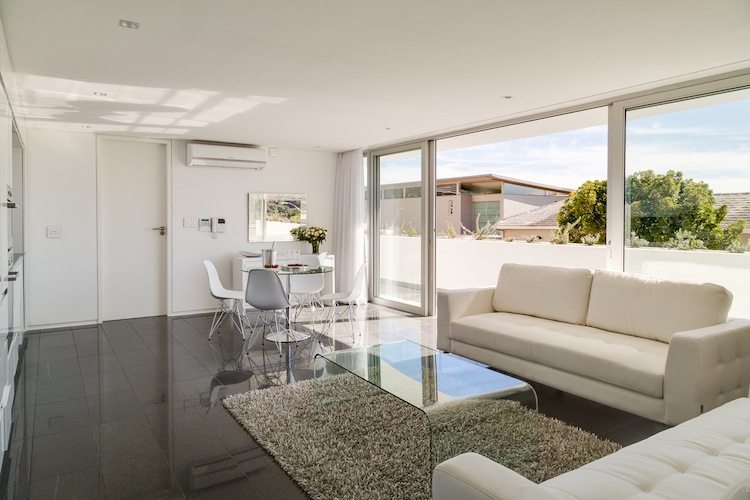 Stylish, new, modern design apartment in Camps Bay, located in a quiet cul-de-sac in the wind sheltered Glen area. This apartment is west facing and has two bedrooms with en-suite bathrooms and a covered terrace. Apartment Maxima is within 15 minutes walk to the Camps Bay beach, restaurants and shops and within 10 minutes drive to downtown Cape Town.