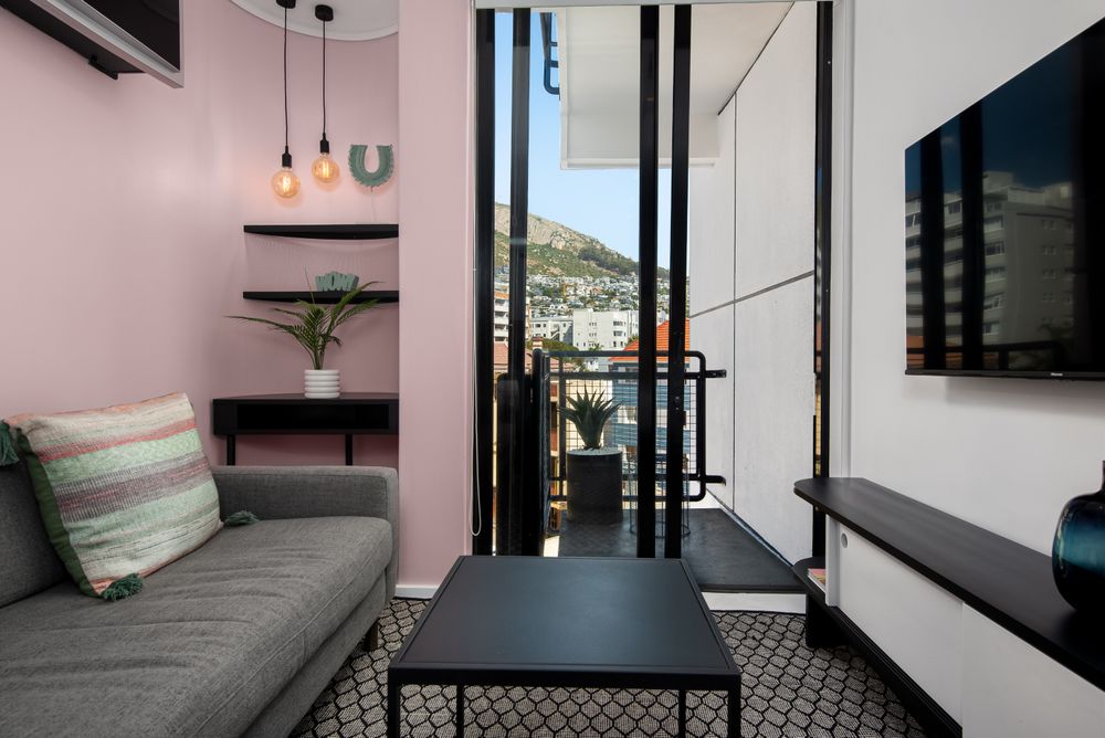 This quirky studio apartment features minimalistic design with everything you need to make the most of your seaside escape. A fully equipped kitchen, comfortable double bed, dedicated work station, lounge with Smart TV/Netflix and a private balcony with views of Lion's Head. The highly walkable neighborhood is on the doorstep of the Sea Point Promenade. A stone throw from the olympic-sized Pavilion swimming pool and the plethora of shops, restaurants and cafés.