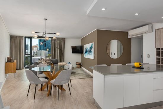 This comfortable 2 bedroom, 2 bathroom apartment with a modern open-plan kitchen/lounge offers picturesque City views from the balcony. It is ideally positioned within walking distance of the V&A Waterfront and some of Cape Towns' trendiest restaurants, bars, and cafes. Just a 10 - 15 minute drive to Table Mountain and the world-famous beaches of Clifton and Camps Bay.