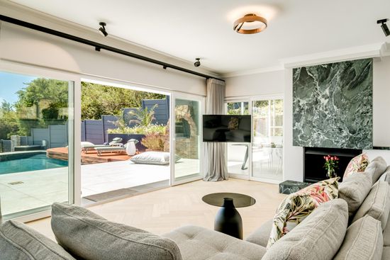 Aqua Blue is a serene villa in Camps Bay offering four stylish bedrooms, including a separate cottage with panoramic ocean views. It features a fully equipped kitchen, spacious living areas, a private pool, and a gym. Located near the Camps Bay Promenade and Table Mountain, it combines comfort with stunning sea views.