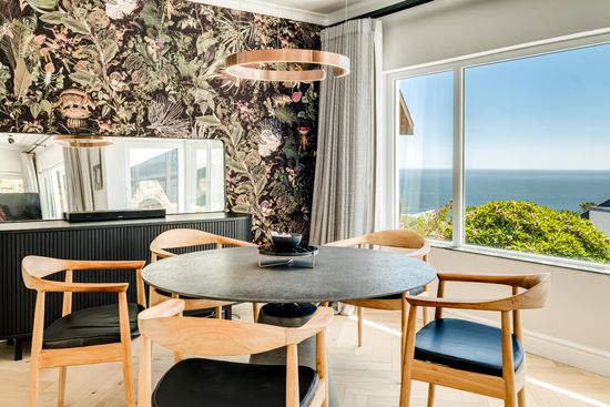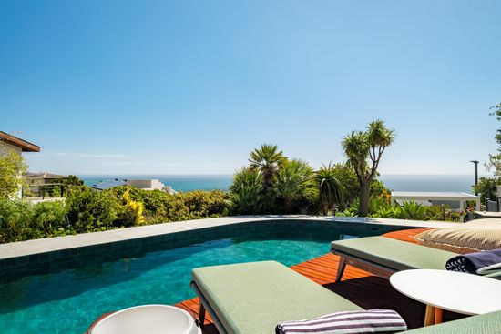 The living and dining areas are perfect for relaxing, with seating for five and direct access to the pool deck. The fully equipped kitchen overlooks the sea, featuring a dishwasher, washing machine, dryer, and bean coffee machine. The office features a height-adjustable desk along with sea views. The property features a private pool surrounded by sun loungers, where guests can enjoy the outdoors with a wood barbecue (BBQ), outdoor shower, and dining for eight – all complemented by stunning sea views. For those seeking a bit more activity, the property includes a well-equipped gym on the upper level. Just a five-minute drive to the renowned Camps Bay Promenade and Table Mountain Cableway, Aqua Blue offers a peaceful haven close to popular Cape Town attractions.