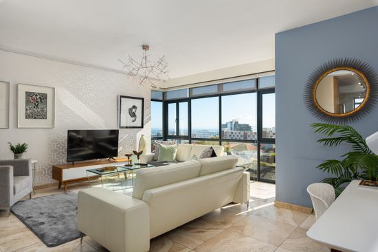 Bright and spacious lounge area with large windows that allow you to enjoy the sea views. The lounge opens onto a balcony where you can enjoy Cape Town's gorgeous sunrises and sunsets.