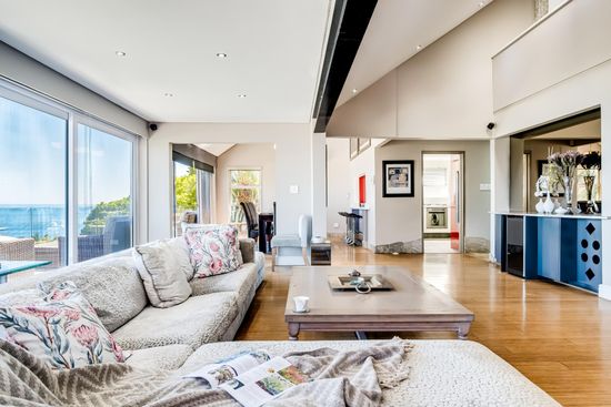 Belize Villa is a beautifully designed home in the seaside suburb of Camps Bay, with incredible views of the Atlantic Ocean and Twelve Apostles mountains. The spacious main bedroom features a king-sized bed, air conditioning, and access to a private deck, while the en-suite boasts both a bath and shower with a double vanity. The second and third bedrooms also enjoy sea views and easy access to the deck, with the third bedroom offering mountain views as well. The fourth bedroom is on the lower level and only accessed from an exterior staircase. It has a queen bed, en-suite bathroom and a private deck with access to a fynbos garden.