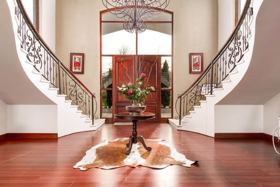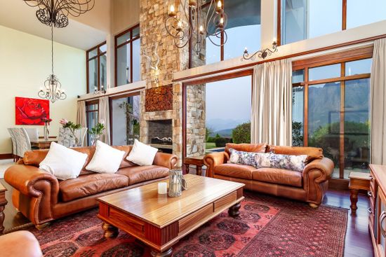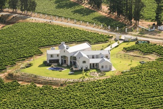 Vineyards sprawl beyond this impressive Stellenbosch home, connecting you with nature. From the outdoor pool, catch a glimpse of soaring mountain peaks as you float in the glittering water. Spend an afternoon touring a winery, procuring a bottle to uncork at sunset on the terrace. Quaint streets in the heart of town, dappled with the shadows of oaks, are rich with boutiques, cafés, and galleries.