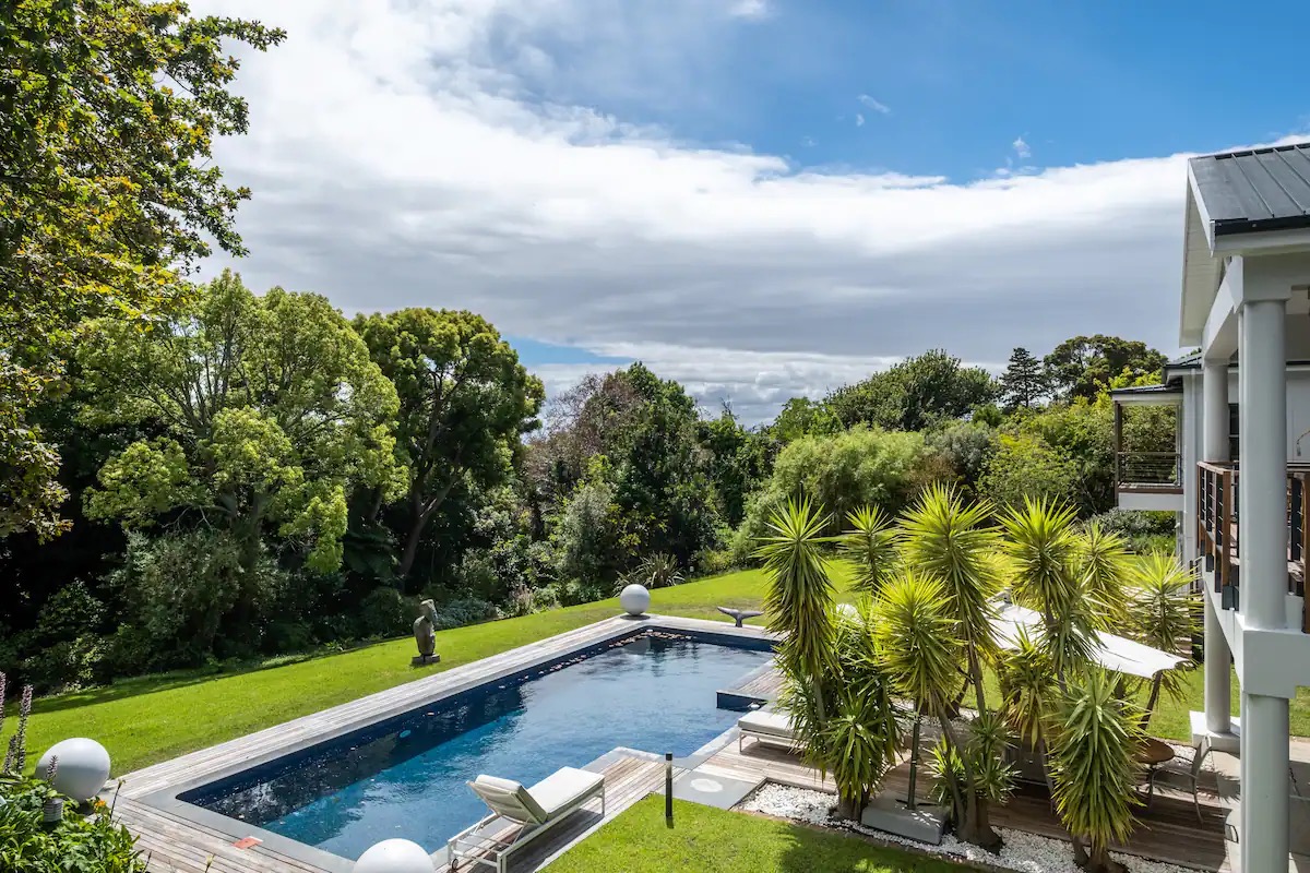 Bishopscourt Charm, a luxury villa in Bishopscourt. This holiday rental in Cape Town accommodates 14 guests with 7 bedrooms and 7 bathrooms. Contact us today for daily rates and availability to book your luxurious vacation stay at Bishopscourt Charm.
