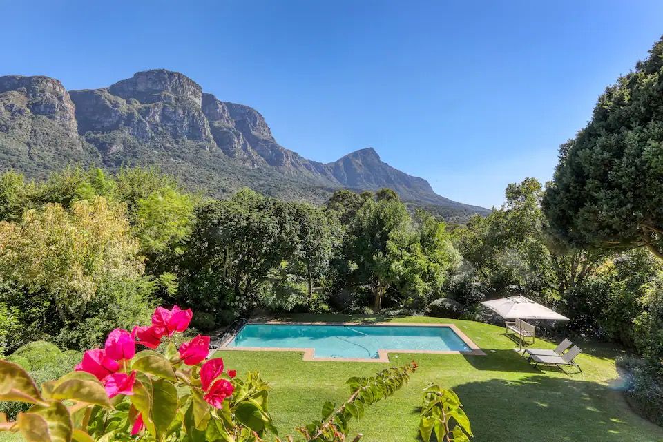 Kick back and relax in this calm, stylish space. This beautiful home is situated in Bishopscourt in a mature garden with mountain views. It's the perfect home to relax in with 4 spacious bedrooms upstairs and open-plan living downstairs. The space leads outdoors to a covered patio and down to the swimming pool. It's also kid-friendly with a trampoline, swing, large wendy house and garden to explore. The home is serviced 6 days a week.