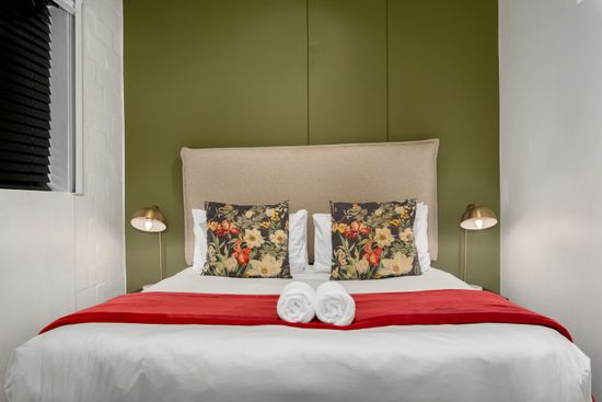 Luxurious, light, and bright with sliding doors opening onto a lovely balcony where you can enjoy a good cup of Cape Town coffee or a nice glass of wine. Settle in for a guaranteed good night's sleep in the Queen-sized bed. The apartment boasts ease of living with its modern finishes and contemporary design. A fully equipped kitchen with modern appliances will have you cooking like Jamie Oliver! Take advantage of a communal laundry room or sunbathe on a large rooftop terrace before taking a dip in a communal swimming pool with wrap-around views.