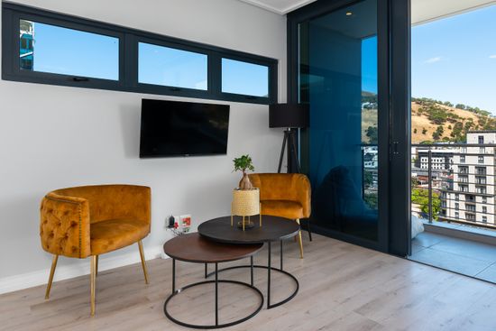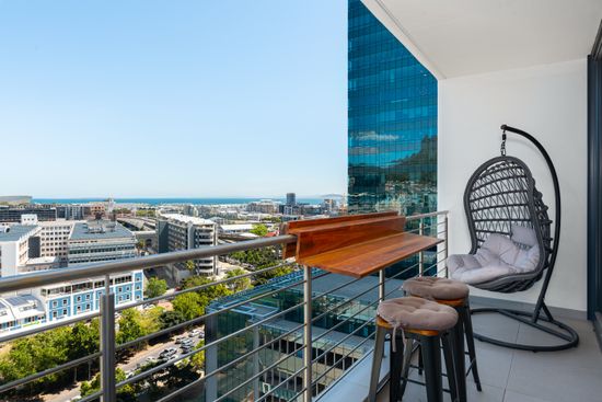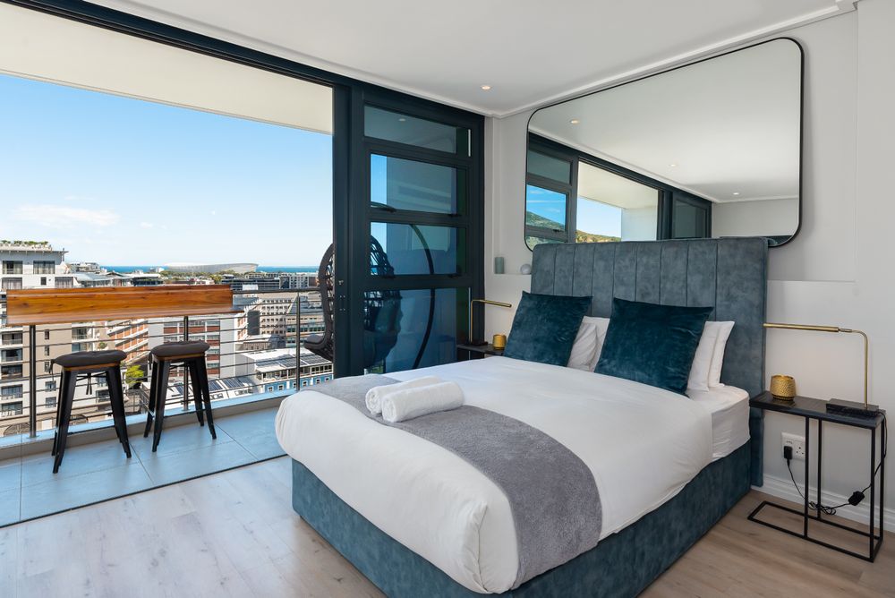 This vibrant 1 bedroom apartment features a modern design with lush finishes throughout. It is equipped with a kitchen, a comfortable queen-size bed, a TV with Netflix, and a bathroom with a walk-in shower. The 14th-floor balcony is the perfect place to enjoy the Cape Town night skyline and daytime city views with a glimpse of Table Mountain in the background.