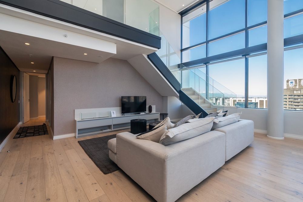 Indulge in a lavish escape like no other at our exceptional 4-bedroom double volume penthouse, perched atop Cape Town's highest residential block, 16 on Bree. Prepare to be swept away by a symphony of luxury, style, and awe-inspiring views that stretch across the city, the harbor, and the iconic Table Mountain.
