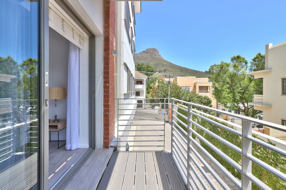This spacious apartment is situated in a small block in a quiet neighbourhood and consists of a main bedroom, x1 full bathroom, north facing balcony off the bedroom with an open plan lounge, dining area and kitchen onto a private patio with views of Table Mountain.