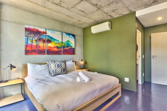 This 3-bedroom apartment is characterised by its colourful Industrial ambience and features floor-to-ceiling windows in the living areas and sliding doors that open onto a spacious balcony offering breathtaking views of Table Mountain and the city at its feet.