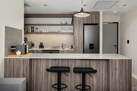 The open-concept kitchen, lounge-cum-dining areas, offer a peaking view of the City. The kitchen is fully equipped with appliances and everything you'll need to channel your inner Jamie Oliver!
