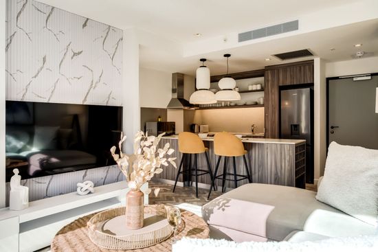 City Suite 905 combines classic charm with modern comfort in Cape Town City Centre. It features a king bedroom with city views, a bathroom with a shower, and a living area for four with a TV. The kitchen includes an electric hob, washer, and breakfast bar. Enjoy centralized air conditioning, building security, and no loadshedding for a seamless stay.