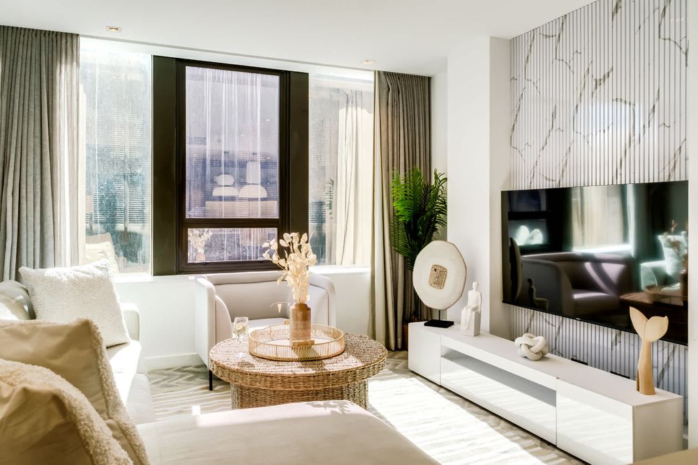 City Suite 905 offers a refined blend of traditional design and modern comfort in Cape Town City Centre. The spacious main bedroom features a king-sized bed and centralized air conditioning, with city views that provide a captivating backdrop. The dedicated bathroom includes a shower and a single vanity. The living area, designed for relaxation, includes seating for four, a TV, and panoramic city views that create a dynamic living space.