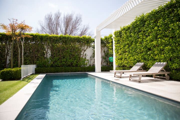Private Electricity Back-Up. A stunning home in central Claremont allowing easy access to the beaches and city within 15 minutes. This 3 bedroom home is tastefully decorated and has a great indoor-outdoor flow. The open-plan kitchen, dining, and lounging area leads outdoors onto the patio and pool area. There is a great children's play space with a trampoline and an upstairs music/playroom. The spacious master bedroom en-suite has beautiful views and both of the children's rooms have en-suites. We will be available throughout your stay to help with anything you may need; from restaurant bookings to tourist activities. I would advise having your own car and you can also uber everywhere.