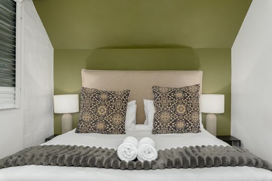 Modern one bedroom apartment in Bo Kaap. Settle in for a guaranteed good night's sleep in the Queen-sized bed. The apartment boasts ease of living with its modern finishes and contemporary design with every convenience attended to; like Netflix channel access and Fibre. A fully equipped kitchen with modern appliances will have you cooking like Jamie Oliver! Take advantage of a communal laundry room or sunbathe on a large rooftop terrace before taking a dip in a communal swimming pool with wrap-around views.