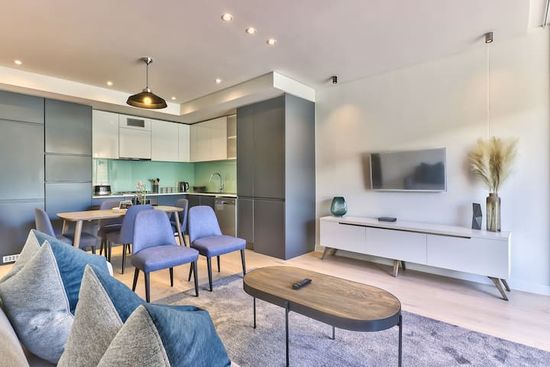 As you step into the apartment, you'll immediately feel the warm and inviting atmosphere. The open and spacious living area is beautifully decorated with contemporary furnishings, creating a welcoming ambiance. Natural light floods the space through large windows, giving it a bright and airy feel. Sink into the plush sofa and unwind while enjoying your favorite shows on the large flat-screen TV, or simply relax with a good book in hand.