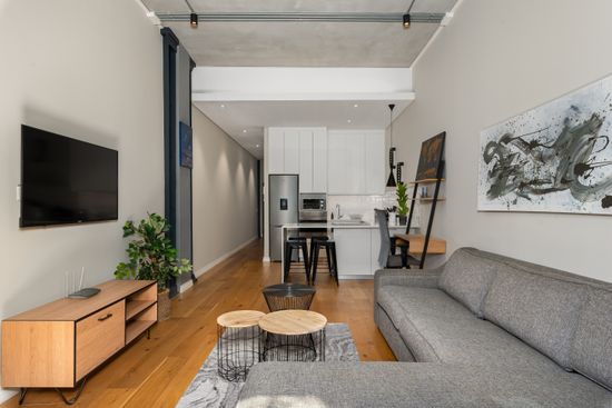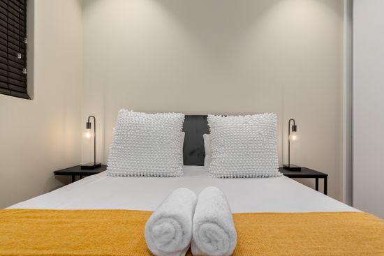 This contemporary apartment consists of an open-plan living area with a lounge, dining area and a modern kitchen with the latest appliances. Step out onto the private outdoor balcony and take in the views. The bedroom features a queen-size bed, built-in cupboard space and aircon. The spacious walk-in shower in the bathroom makes it a great choice for those looking for a luxurious stay.