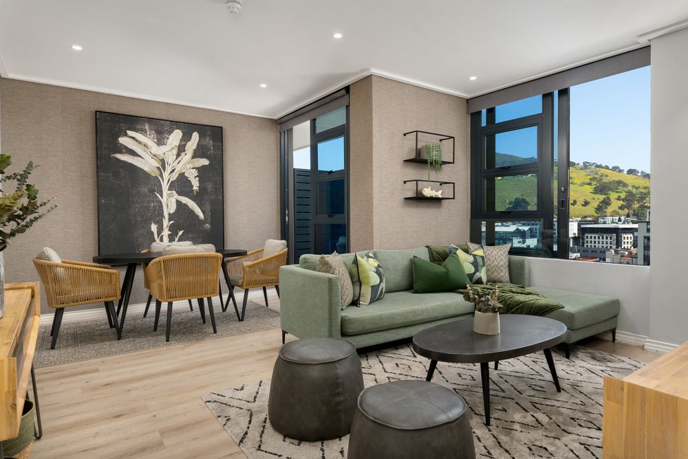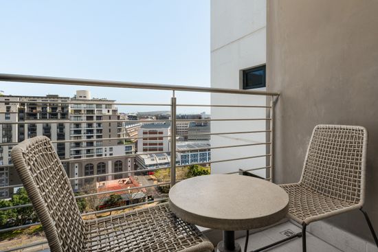 This designer studio bedroom apartment features a modern design with lush finishes throughout. It is equipped with a kitchen, a comfortable queen-size bed, a TV with Netflix, and a bathroom with a walk-in shower. The 13th-floor balcony is the perfect place to enjoy the Cape Town night skyline and daytime city views with a backdrop of the De Waterkant hill, the stadium and the City.