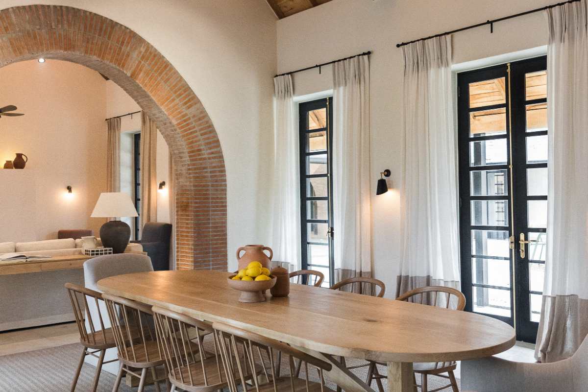 This modern farmhouse is situated just outside the tranquil Winelands town of Franschhoek, surrounded by vineyards and framed by the awe-inspiring Simonsberg mountains. The interiors exude a contemporary, rustic charm, while the spacious outdoor area (complete with two pools) makes this the ideal wine-country escape that ticks all the boxes
