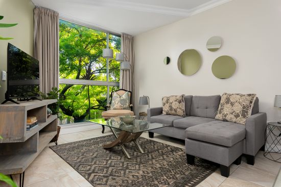Surrounded by lush vegetation and trees, this beautiful and spacious 1 bedroom apartment is the perfect base when visiting Cape Town. Conveniently located in the popular leisure district of Green Point, within walking distance of Cape Town Stadium, the V&A Waterfront, Green Point Park and the Sea Point Promenade. Table Mountain and the famous beaches of Clifton and Camps Bay and just a scenic 10-15 minute drive away. The local favourite Giovanni's Deli is right on your doorstep!