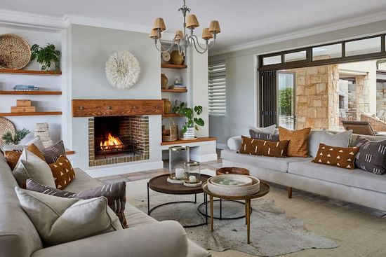 The enchanting interior is cool in the summer with its clay-tiled floors, and in the winter, the home is deeply cosy with fires crackling in its eight fireplaces. Natural materials have been used throughout the home, bringing the natural world harmoniously into the living space with hand-crafted furniture and décor sourced from artisans throughout Africa.