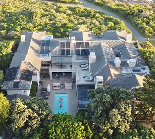 You will relive the day in your mind, from your gourmet morning coffee on the patio—watching the mist burn off Walker Bay with the pink sunrise—to hearing the chorus of birds come to life in the proteas surrounding the property, picnicking on a hidden sandy beach, or strolling through the nearby galleries and wineries and ending the day in the jacuzzi with a glass of bubbly and stargazing. This contemporary yet comfy and capacious home will restore you.
