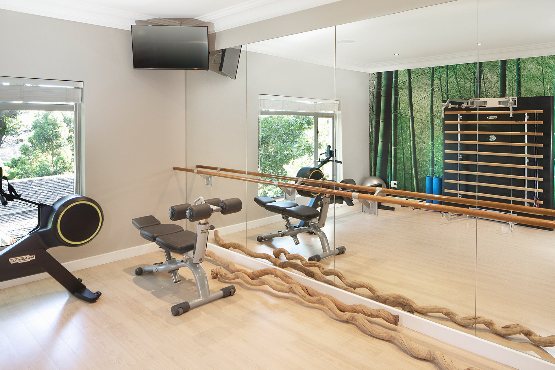 Bedroom 4: King-size bed with own entrance and access from gym in the main house; en-suite with only shower, own sitting room