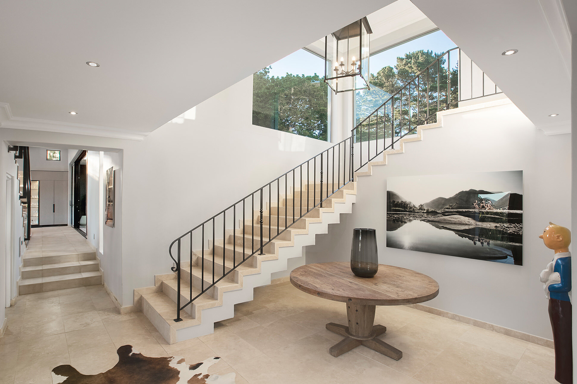 Samadhi, a serene retreat in an urban setting, is a home that tells the story of a love for travel, artistry, and entertainment. Each room and area allows for comfortable elegance that seamlessly flows between the indoor and outdoor spaces. The 4-bedroom house and 3-bedroom cottage feature modern architecture with a tranquil African influence on the interior design and offer over 1000 square meters (m2) of living area and space for up to 14 guests. A pool, tennis court, and garden oasis complete the estate. Samadhi embodies sustainable design which includes solar panels and pumped borehole water. The house boasts an exquisite contemporary art collection, including photographs by Freddie Child-Villiers, sculptures by Dylan Lewis, and paintings that showcase Africa’s vibrant and diverse culture.