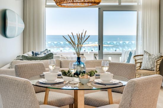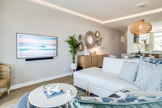 The open-plan living area, thoughtfully designed, boasts sea views, air conditioning, and access to the balcony, perfect for unwinding and taking in the ocean breeze. A fully-equipped kitchen with a breakfast bar overlooks the mountains, and the apartment includes convenient amenities such as a Nespresso machine, washer, and dishwasher. Steps from the beach, Camps Bay Promenade and some of Cape Town's best attractions, Kyanos is the perfect place to spend time in Cape Town.