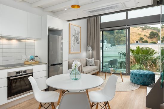 This plush one-bedroom, one-bathroom apartment in trendy De Waterkant is at the centre of Cape Town's café culture, littered with creatives. Perfectly located right at the foot of Bo Kaap's colourful houses and cobbled streets—just a short drive to Table Mountain and the world-famous Camps Bay Beaches and a stone's throw away from Sea Point Promenade, the V&A Waterfront, and some of the CBD's most noteworthy Local Eateries. Abuzz with culture and adventure.