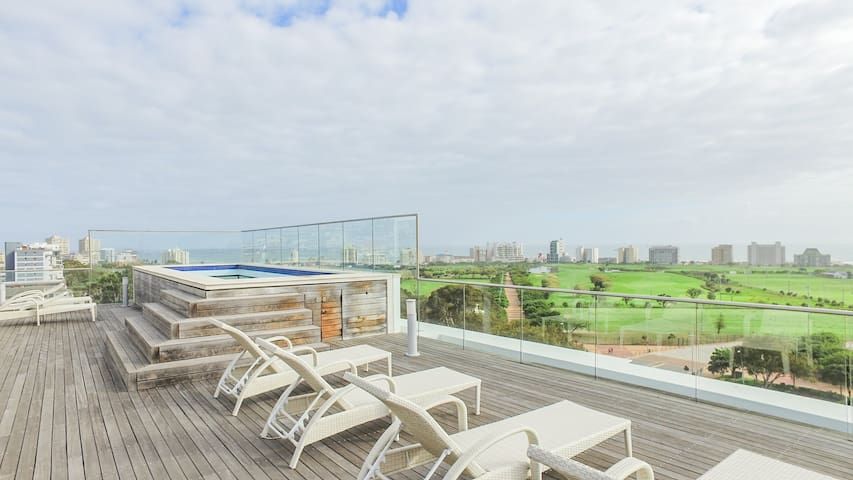 Stunning roof top with 360 views of Cape Town, guests have access and use of the swimming pool and barbeque facilities.