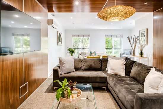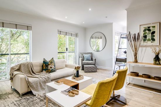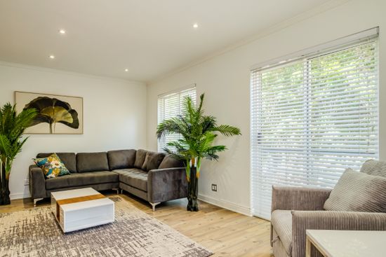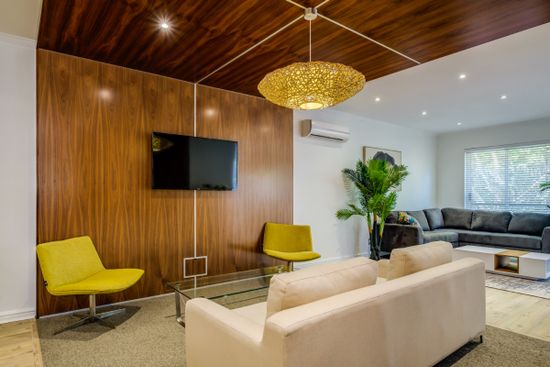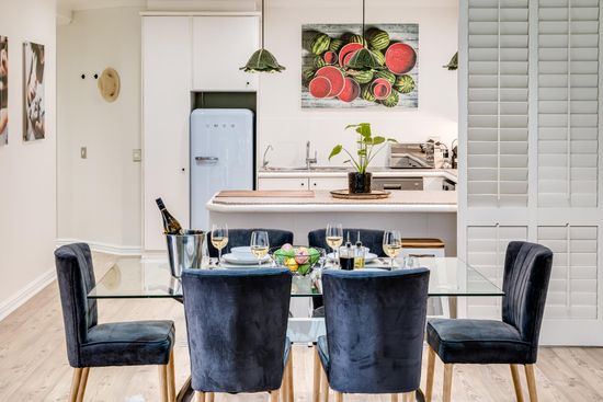 The large open-plan living space is beautifully decorated and has all the modern equipment needed to enjoy your time in Cape Town. The space offers two lounge areas and a dining table with seating for 6.