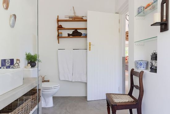The House is an open plan living space with a wood-burning fireplace for cozy winter nights and there is an outside braai area with swimming pool perfect for those summer days. The bedroom is an extremely relaxing spot with views looking out onto the Franschhoek mountains. Great Mediterranean style bathroom with a great shower.
