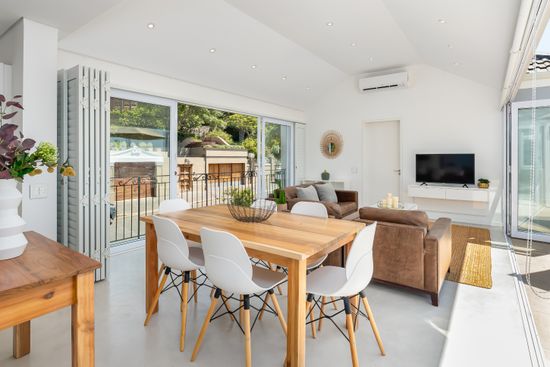 This light and bright apartment is an open-plan masterpiece. Boasting a sun-drenched and airy living-cum-dining-area and a fully equipped kitchen with modern appliances leading onto a large balcony. With stackable doors and clear, uninterrupted views of Table Mountain and an air conditioner in every room. The perfect home base for any Cape Town adventure!