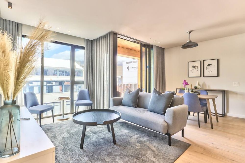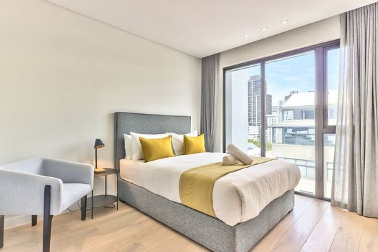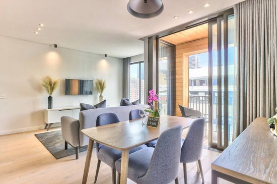 Brand new, modern apartment in the heart of trendy De Waterkant with fast wifi and allocated-off street parking- makes this unit a rare gem in the City! This two bedroom apartment has loads of natural light, and top class finishes and is perfect for two couples travelling together to have a central home base! A fully equipped kitchen with dishwasher for convenience, open plan dining area and AC units in both bedrooms. Front desk with 24/7 Security personnel and off street parking