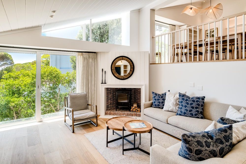 Tucked into the serene hillside of Higgovale, Quarry 16 offers a refined retreat blending contemporary elegance with spectacular Cape Town views. The master suite features a king bed, air conditioning, a ceiling fan, and an en-suite with a bath, shower, and double vanity, opening onto a shared deck with seating for seven. Three additional bedrooms, each with en-suites and twin beds, provide flexible sleeping arrangements and decks with sea views. The airy living and dining area, complete with a wood fireplace, wet bar, and seating for six, opens to breathtaking city, mountain, and sea views.