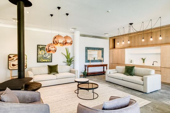 Nine large king-bed suites offer private balconies, garden access, or open views, with bathrooms either en-suite or shared. Kitchens, bar areas, air conditioning, fireplaces, and a mini coffee station provide comfort throughout. With the Sea Point Promenade approximately a five-minute drive away and Clifton Beaches roughly ten minutes from the door, Rhea Retreat offers an expansive base in one of Cape Town’s most sought-after neighbourhoods.