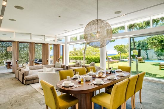 Rhea Retreat in Fresnaye is an extravagant, spacious, and contemporary villa with a garden, a pool, nine king-bed suites, and easy access to the Sea Point Promenade and 10 minutes to Clifton Beaches.
