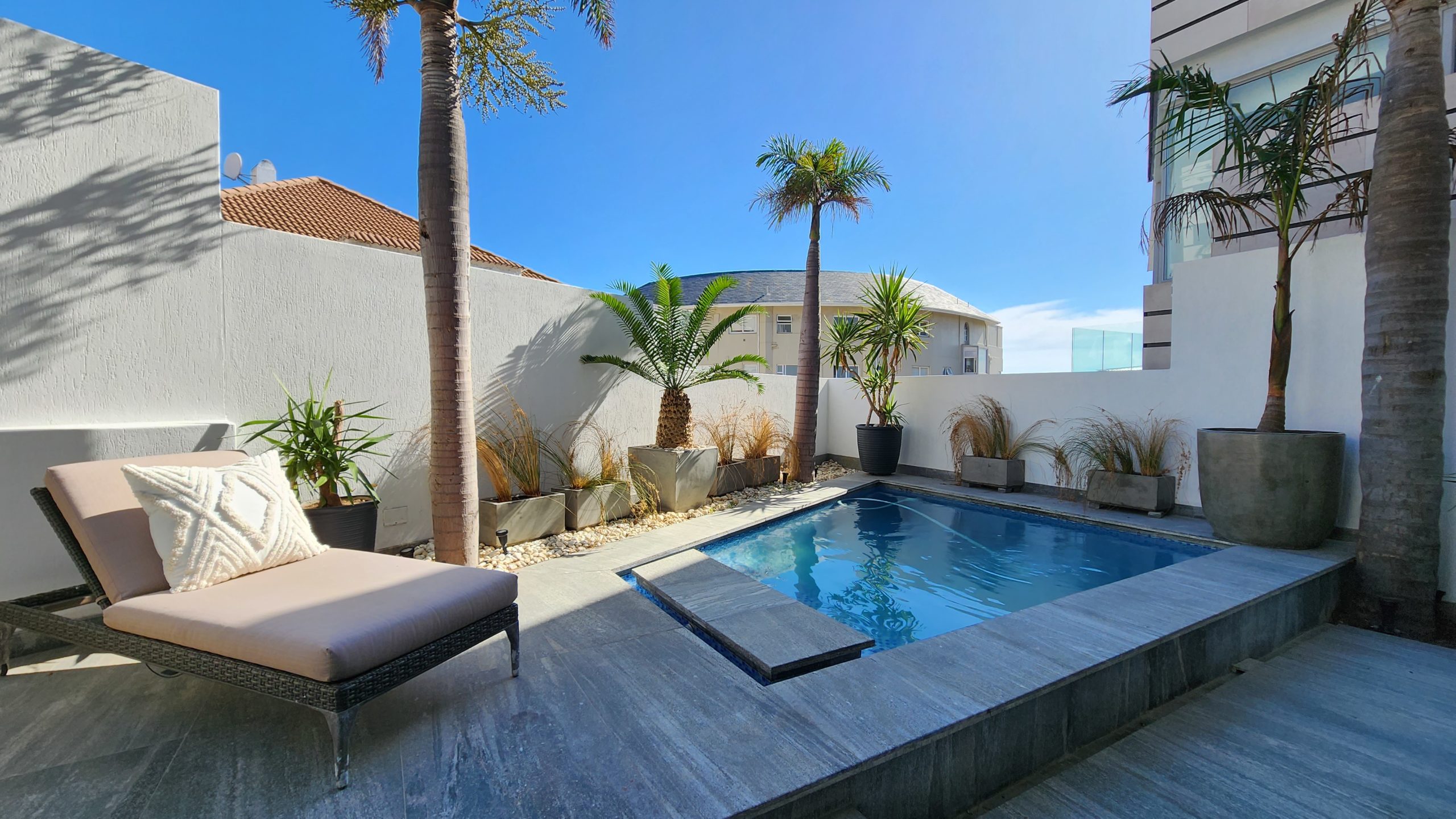 Double volume clean lines and sophisticated ambiance in light-filled rooms on all levels, state-of-the-art tech and finishes throughout the 3 en-suite bedrooms, designer kitchen and living space, dining terrace, pool deck and garden. A magnificent, fully equipped chef kitchen awaits you with an open plan living area. 3 bedrooms en-suite fully air-conditioned villa. An inverter system for those load-shedding days. Centrally located in Bantry Bay neighboring the illustrious Aurum Presidential Residences with space for two cars, secure off street parking which is a rare find in the bustling Atlantic Seaboard and easy to find for any driver, 2 minutes from Sea Point, 10 minutes to Camps Bay and Cape Town’s City Center and 10minutes to the V&A Waterfront.