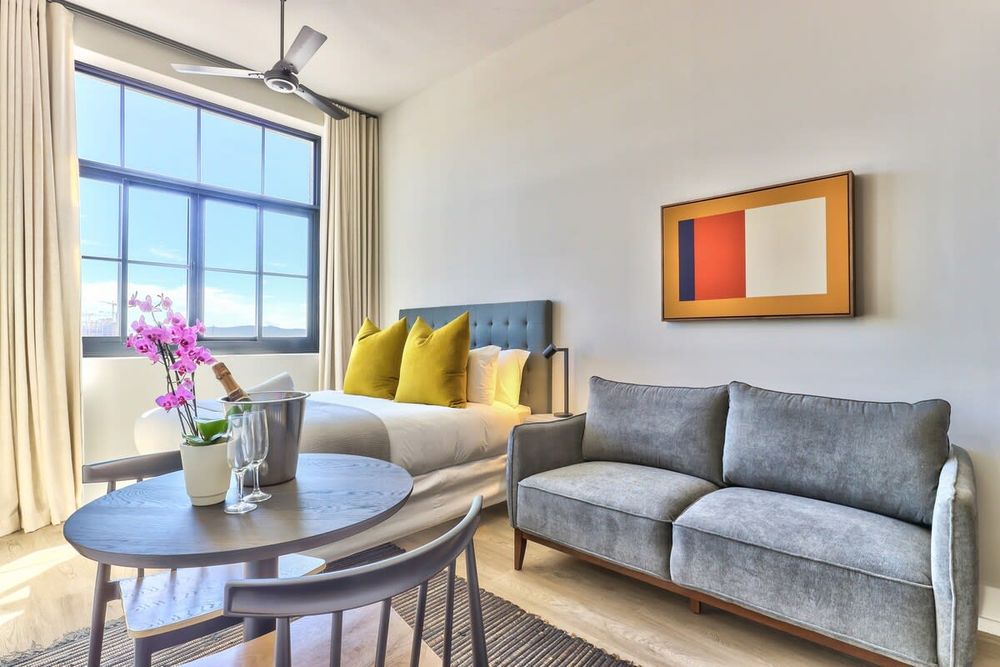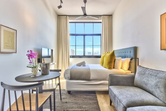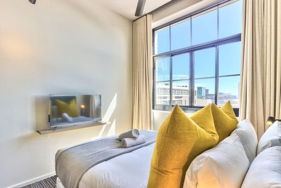 A stylish, modern apartment offers a special sanctuary in the East City Precinct. The apartment block is 5 minutes away from the CBD and close to some top bars, restaurants and Cape Town's nightlife. Enjoy a fully equipped apartment with top of the range furnishings and appliances throughout. The apartment if located on the fifth floor and boasts incredible City views. The feel of the apartment is sophisticated luxury. Kindly note that the laundry room facility will be at an additional charge.