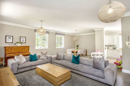 Constantia is one of the oldest and most established suburbs in Cape Town. It is surrounded by mountains, greenbelts and open spaces for walking and horse-riding. There are also 8 wine-farms in Constantia, many kid-friendly dining options and numerous golf courses. It is a quick 20 minute drive into the city centre and many of the beaches. It is truly a magical place.