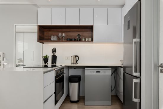 16 on Bree is a new development on the border of De Waterkant and the CBD. The building features a 27th-floor communal pool deck and outdoor gym with breathtaking ocean, city, and mountain views. This central position makes the apartment ideal for leisure or business travel. Walk to the CTICC or take a 5-minute drive to the V&A Waterfront. Just a 10-minute drive to Table Mountain and the famous beaches of Clifton and Camps Bay.