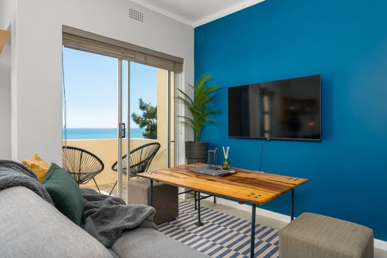 Our intimate and comfortable studio apartment boasts a blend of minimal aesthetics and the practicality of the space creates a relaxing ambiance and a cozy base to explore Cape town. The queen sized bed is comfortable for a beautiful nights rest after a long day exploring the city. Ideal for a couple with a child, the sleeper couch provides more flexibility. The dining area and living room open onto the balcony with outdoor furniture and amazing sea views. The windows let in abundant natural light with the living space. This space is also perfect for the travel and work person, making it the perfect space to enjoy one of the best climates in the world while easing onto some work.