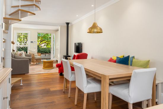 This exquisite two-story townhouse captures the eclectic essence of Cape Town, blending sophistication and comfort in perfect harmony. Every detail of this home has been thoughtfully curated to offer an unparalleled family retreat. The design features a refined selection of modern appliances, high-end finishes, and a tasteful use of colour, creating an atmosphere of both elegance and warmth.