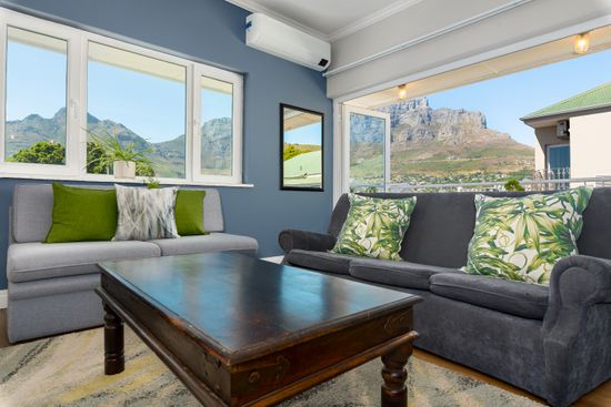 The apartment features a cozy living room with comfortable seating and a flat-screen TV, a fully equipped kitchen with modern appliances, and two spacious bedrooms with a plush king-size bed and a queen bed. There are two bathrooms, a guest toilet with a shower and an on-suite with a bath and overhead shower. Both the living area and bedrooms are fitted with aircon, creating a pleasant, climate-controlled environment. Guests can enjoy a private balcony with an amazing view of Table Mountain, perfect for a morning coffee or an evening glass of wine.