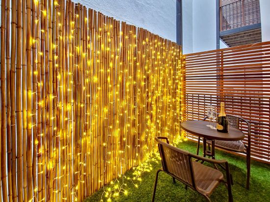 This studio has the ambiance of romance with the beautiful fairy lights on the balcony, and hotel type luxury with all the fixtures, fittings and carefully thought out art work and appliances. With the bedside lamps being hand made, and the building and apartment being brand new- you get a real feel of luxury from the moment you walk in. This is ideal for the travelling couple to stay somewhere central, cosy, with wifi and all kitchen amenities- with great communal areas